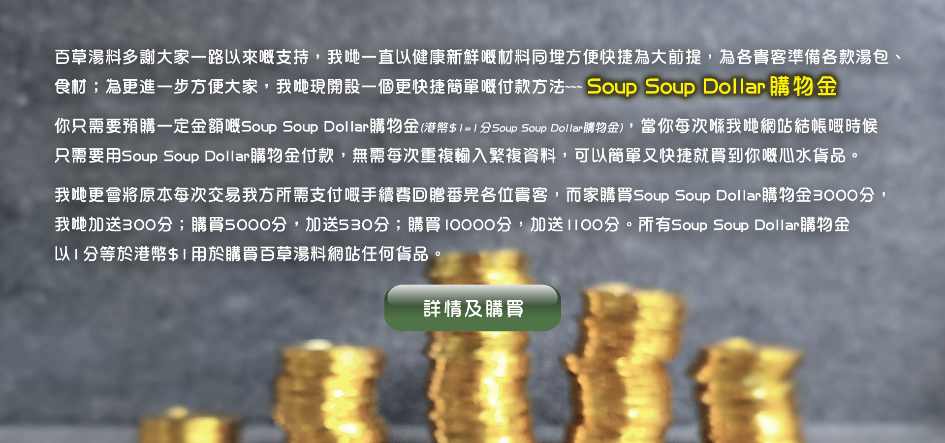 百草湯料網店承傳實體店超過二十年專賣保健湯料嘅經驗,以知識加上經驗,選配咗超過一百款保健湯水同餐餐靚湯,